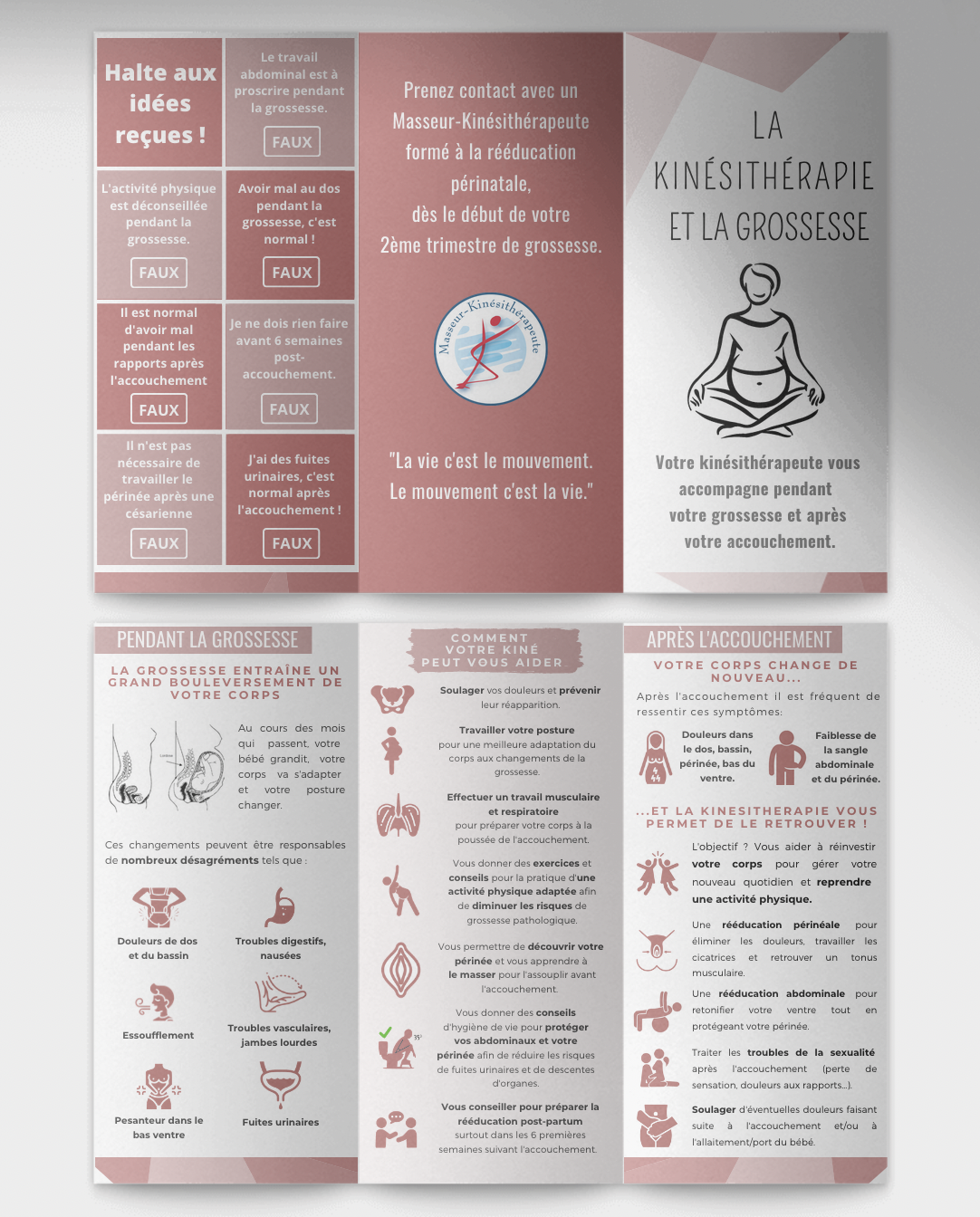 Flyer pour promouvoir le rôle du kinésithérapeute pendant la grossesse.