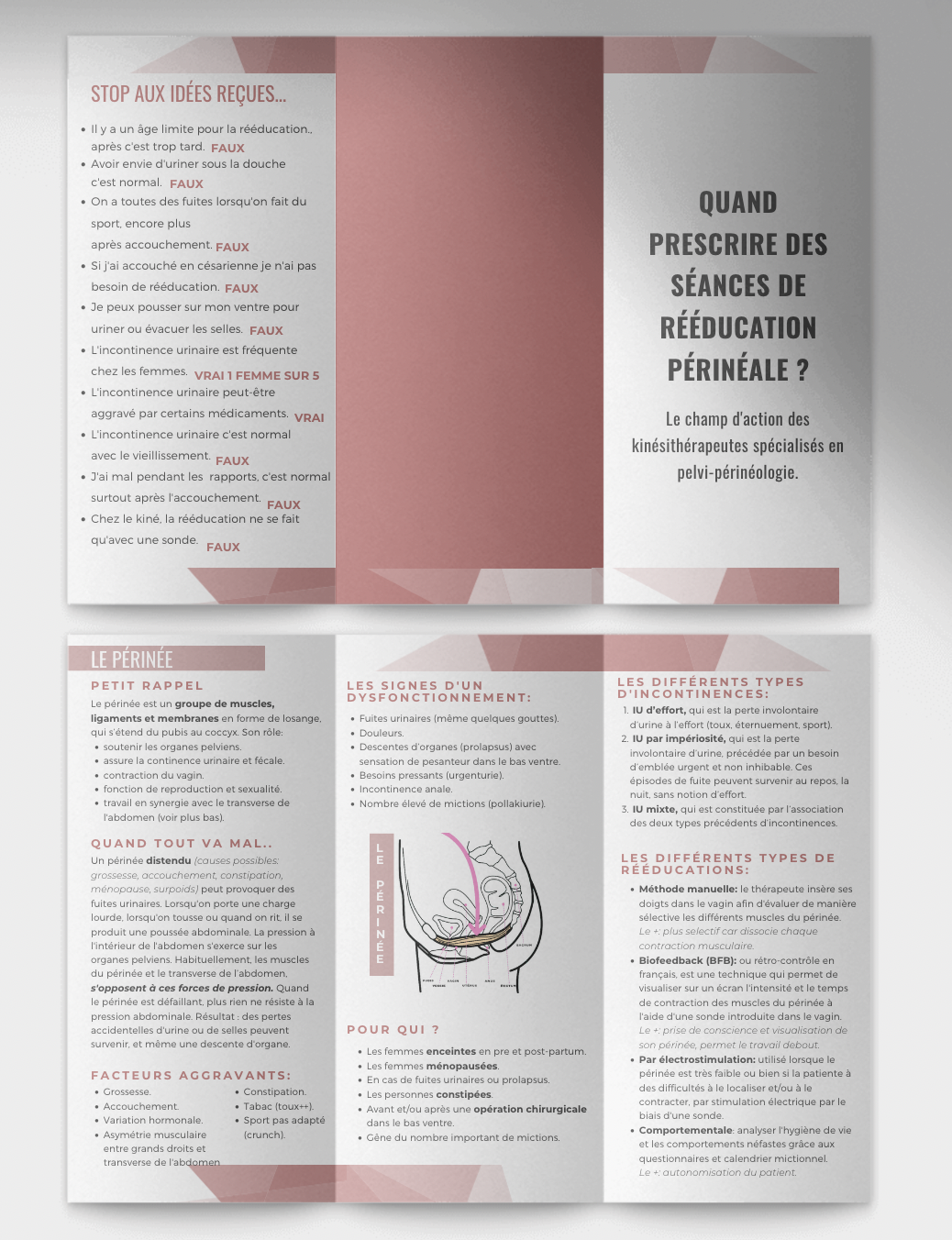 Flyer pour informer les prescripteurs sur quand prescrire de la rééducation périnéale.