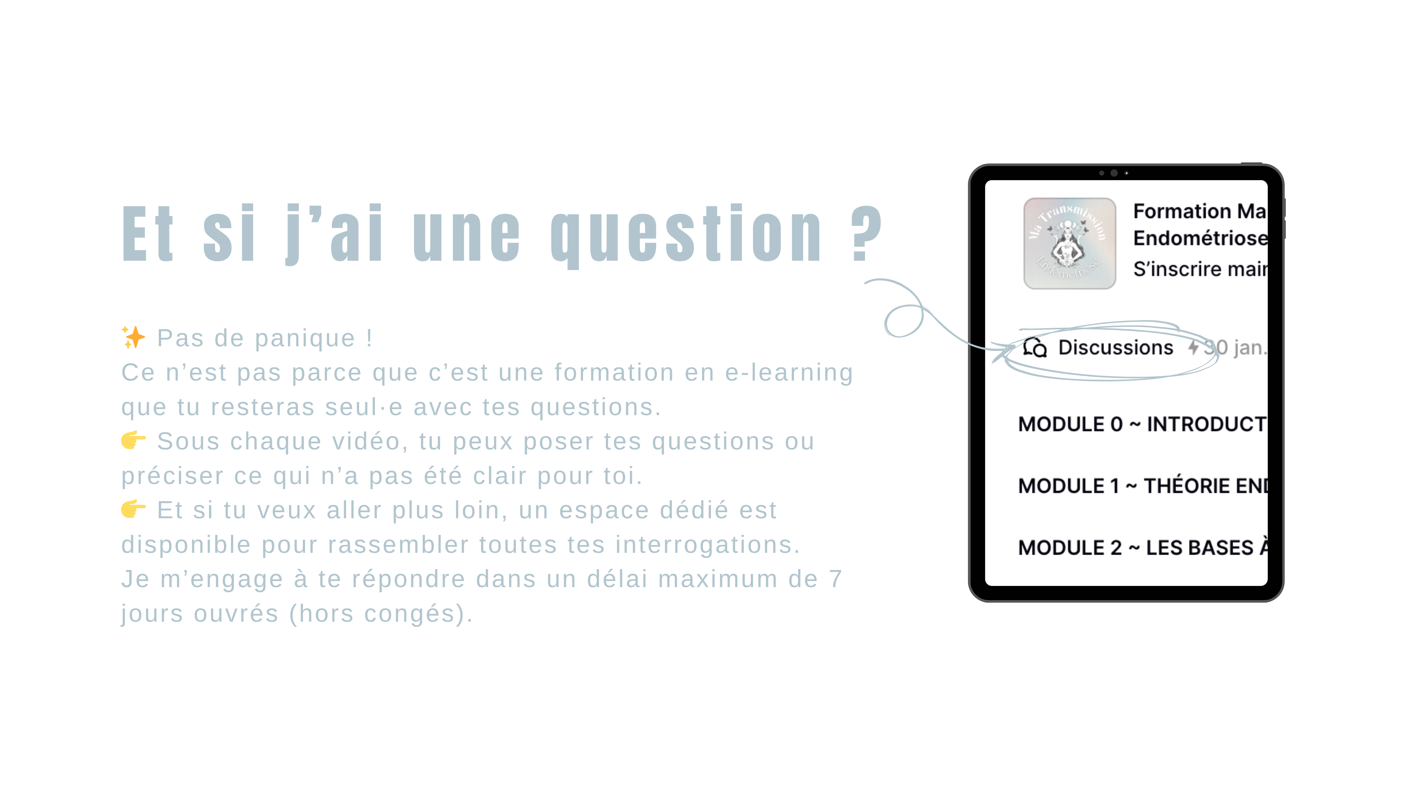 👉 Oui ! Un espace est prévu pour échanger et poser vos questions. Je reste disponible pour clarifier ou approfondir certains points.