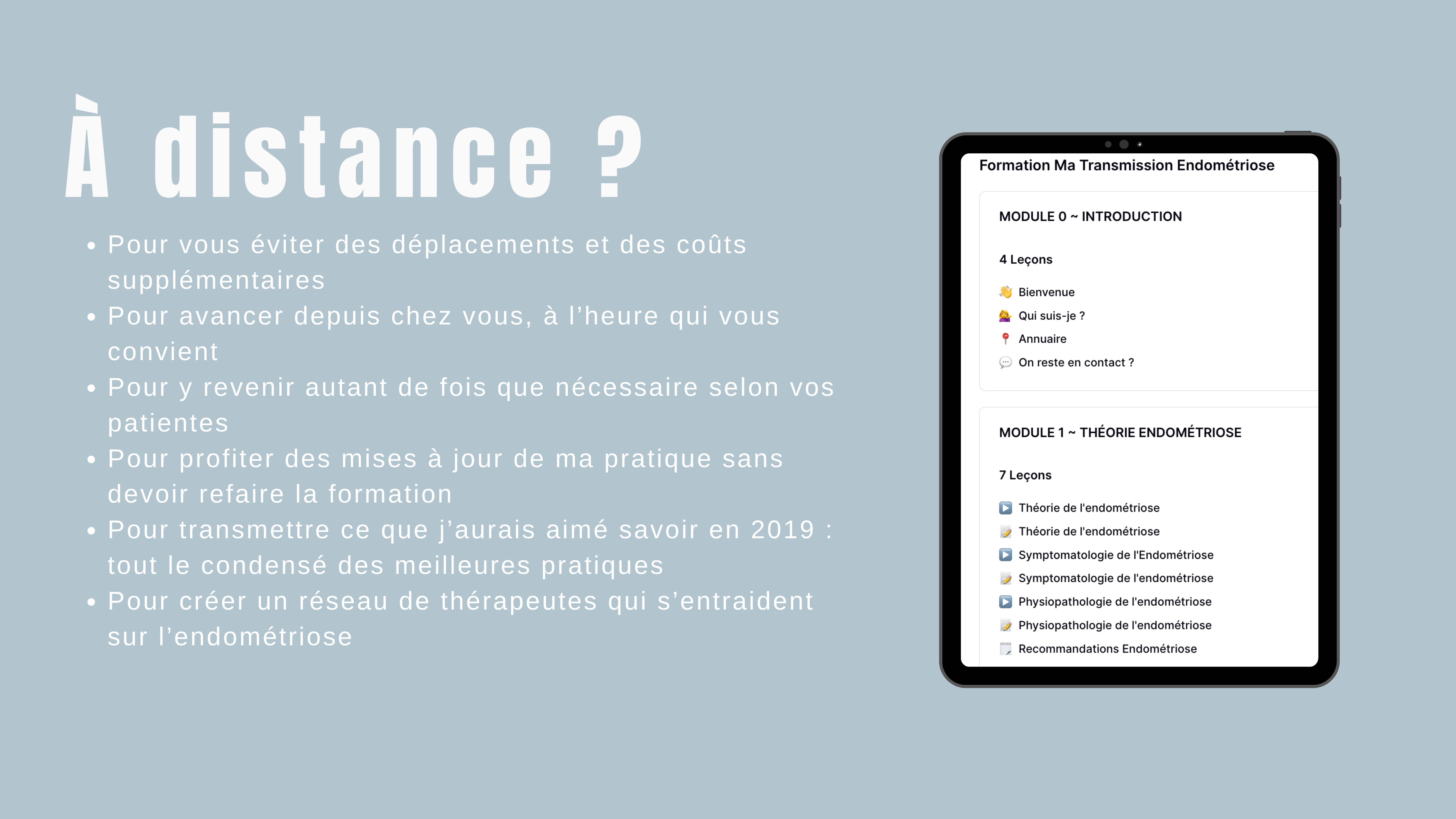 👉 Non ! Elle est ouverte à tous les thérapeutes qui souhaitent accompagner efficacement leurs patientes dans leur parcours avec l’endométriose.
